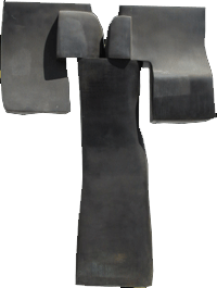 Martillo. Su obra se caracteriza por el acusado sentido del espacio y del ritmo, el juego de volúmenes, el contraste formal y cromático de los materiales que utiliza, junto a una equilibrada poética |